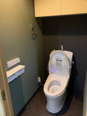 今年、施工させていただいた中で、色調がシックなトイレ、渋い仕上がりです。